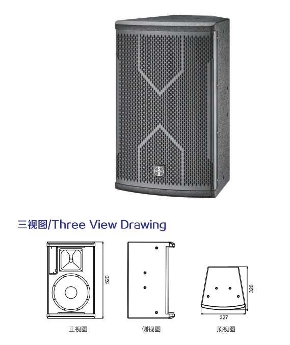 气设计稳重而不失典雅美。可做主要扩声也可以用于辅助补声、舞台返听,两分频设计,超高性价比。